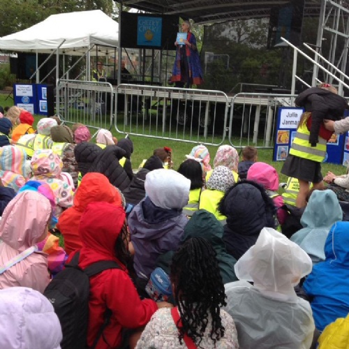 Our year 1 children attended a Portsmouth Library Service event, gathering with hundreds of yr1 children from across the city to meet the brilliant Julia Jarman.